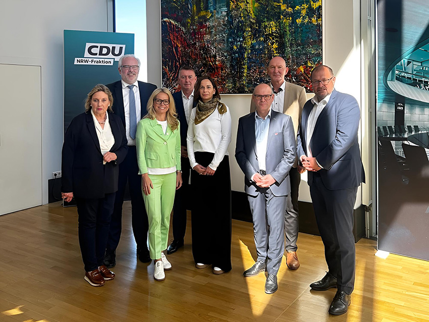 V.l.n.r.: Frank Neuhaus (DGVB NRW), Martin Lucke (MdL, CDU-Fraktion), Angela Erwin (MdL, CDU-Fraktion, Mitglied im Rechtsausschuss), Martina Herzig (DAAV NRW), Silke Pöppelmann (BDR NRW), Achim Hirtz (BSBD NRW), Klaus Plattes (DJG NRW)